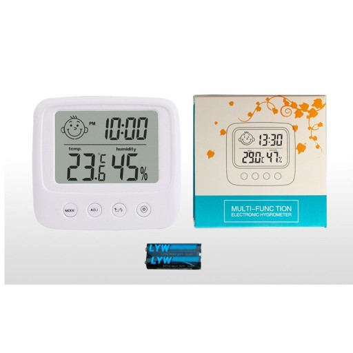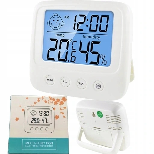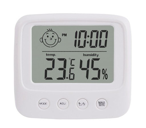 Termohigrometr ma prostą konstrukcję z 3 przyciskami, dzięki czemu wygląda bardziej elegancko i dobrze. Istnieje przycisk przełączania, aby wybrać jednostkę ° c/° f, a przycisk trybu i przycisk ADJ do ustawienia.