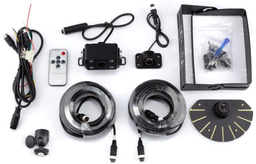 - Wyposażenie: 2 x Kabel video Dodatkowa kamera Monitor Pilot Stojak na monitor Wspornik przeciwsłoneczny