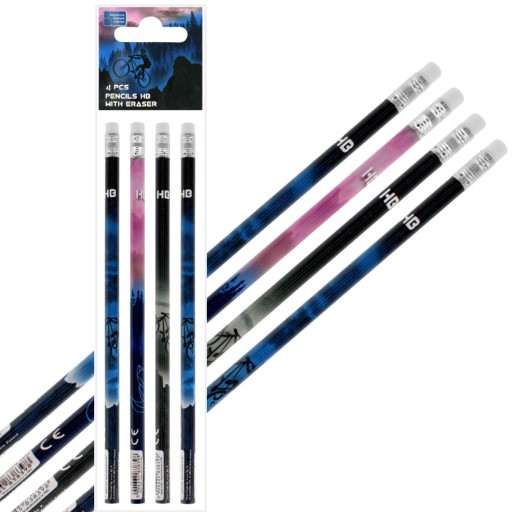 OŁÓWEK SZKOLNY Z GUMKĄ ZESTAW 4 SZTUKI ROWER BIKE