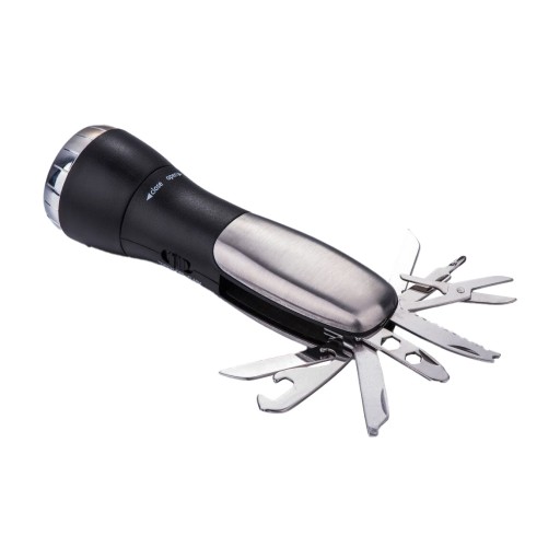 - Wbudowany zestaw narzędzi (m.in. scyzoryk, otwieracz, nożyczki)