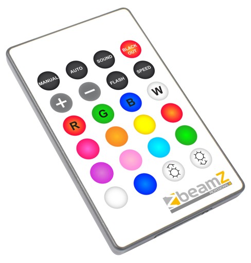 Twórz najpiękniejsze pokazy świetlne dzięki temu LED PAR64 firmy Beamz Professional, profesjonalnej linii znanej marki Beamz. LED PAR jest wyposażony w lekką aluminiową obudowę i zawiera 12 diod LED o mocy nie mniejszej niż 10 W każda, co zapewnia niespotykaną dotąd moc światła. Dla łatwej obsługi, LED PAR64 jest wyposażony w pilota na podczerwień, a dla wymagającego użytkownika, ten LED PAR64 może być oczywiście sterowany przez DMX.