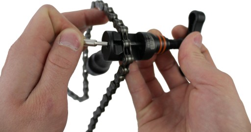 OPATENTOWANY PIN TRZYMAJĄCY OGNIWA ŁAŃCUCHA PODCZAS SKUWANIA POMAGA BARDZO PRECYZYJNIE WCISKAĆ SWORZEŃ - CHRONI TO PŁYTKI OGNIW PRZED PRZYPADKOWYM USZKODZENIEM PRZEZ PRZEMIESZCZENIE.