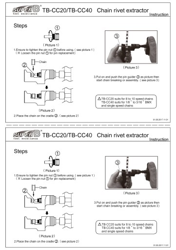 SKUWACZ TAJWAŃSKIEJ MARKI SUPER B TB-CC40 JEST ZAPROJEKTOWANY SPECJALNIE DO BARDZO DOKŁADNEJ PRACY Z 1 RZĘDOWYMI ŁAŃCUCHAMI (DO ŁAŃCUCHÓW O SZEROKOŚCI WEWNĘTRZNEJ OGNIW OD 1/8" DO 3/16").