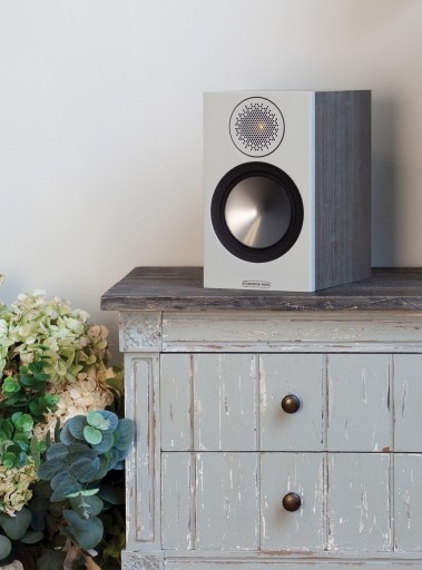 Monitor Audio Bronze 50 White - białe z lekko szarym frontem - para wybitnych 2-drożnych kolumn podstawkowych, nowy, fabrycznie zapakowany komplet.