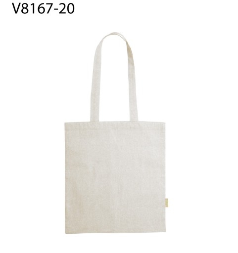 Torba na zakupy z długimi uchwytami, wykonana z bawełny z recyklingu.