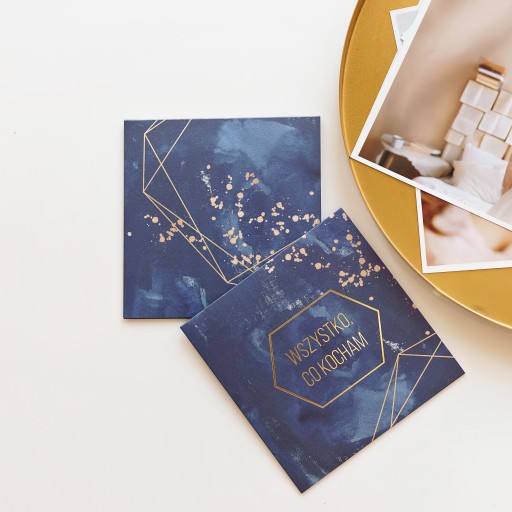 Koperty kartonowe ze złoconym tłoczeniem "WSZYSTKO CO KOCHAM", kolorowym nadrukiem, powlekane folią mat.