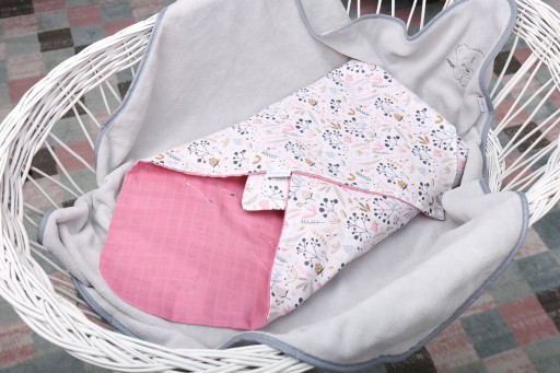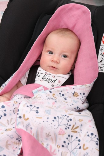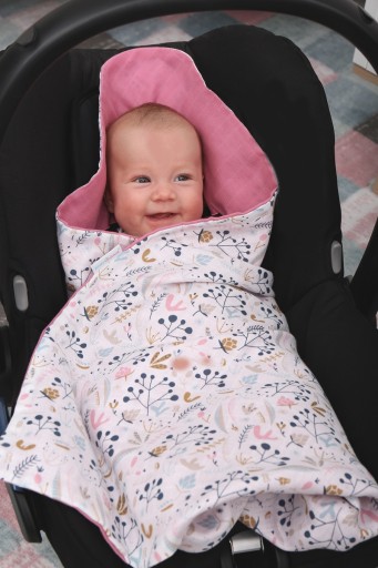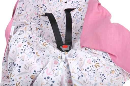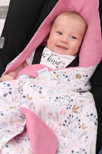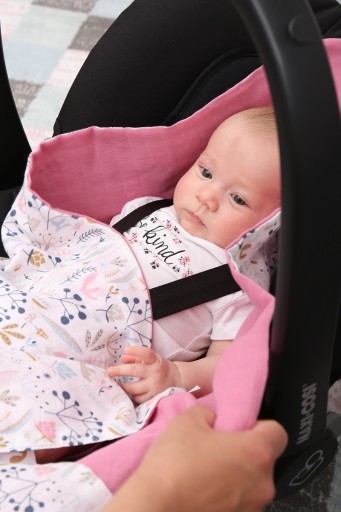 Kocyk ma regulowane otwory na każdy rodzaj pasów (nosidełko, wózek, fotelik, krzesełko). Nasz kocyk zbudowany jest z 2 warstw puszystego i lekkiego muślinu, jest dwustronny tzn, że możesz go założyć jak lepiej ci się podoba.