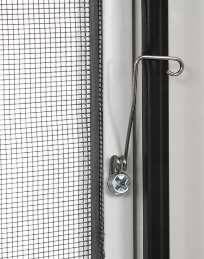 Do osadzenia moskitiery w ramie okiennej zastosowane zostały innowacyjne zaczepy z zastosowaniem elementu sprężynującego, który nieustanie dociska moskitierę i zapewnia prostą a zarazem stabilną instalację.