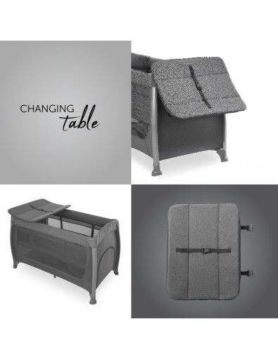 Dzięki praktycznemu stolikowi do przewijania możesz w każdej chwili zmienić pieluchę swojego dziecka. Podczas użytkowania stół jest przymocowany do górnej poręczy łóżka i zawieszany na boku, gdy nie jest potrzebny. Pieluszki, chusteczki nawilżane i zabawki można przechowywać w bocznej kieszeni.