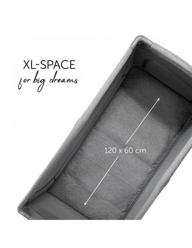 Na etapie noworodka, Twoje dziecko od samego początku poczuje się swobodnie. Podwyższona powierzchnia do leżenia ułatwia umieszczenie i wyjęcie malucha w sposób przyjazny dla pleców. Później podwyższony poziom można usunąć, otwierając zamek błyskawiczny. Na praktycznym przewijaku, który można zawiesić na bocznej części łóżeczka, możesz wygodnie przewinąć dziecko, nawet podczas podróży, a pieluszki, chusteczki nawilżane i zabawki są pod ręką w bocznej kieszeni.