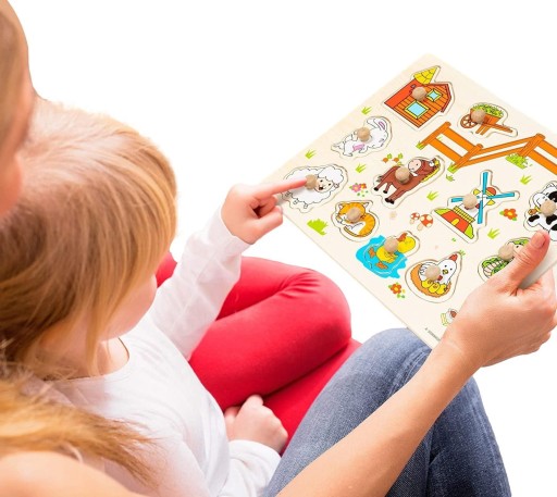 FANTASTYCZNY DREWNIANA UKŁADANKA PUZZLE DLA KAŻDEGO MALUCHA - przedstawiająca życie na farmie !