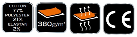 - Skład materiału: 77% bawełna, 21% poliester, 2% elastan
