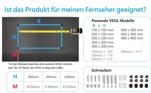 - Kompatybilność z TV - uniwersalna podstawa TV dla większości 26 27 32 37 40 42 47 50 55-calowych telewizorów; kompatybilny VESA: 100x100 / 100x200 / 200x100 / 200x200 / 300x200x200 0 / 30.0 x 300/400 x 200/400 x 300/400 x 400 mm, kompatybilny z takimi markami TV jak Samsung Telefunken LG Philips Panasonic Hisense (...) LCD LED plazmowy.