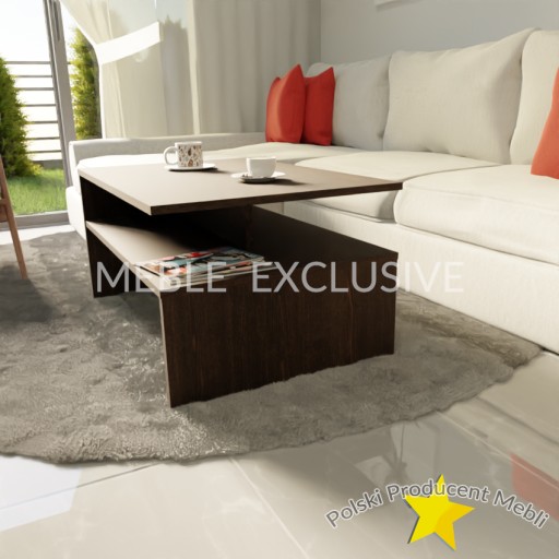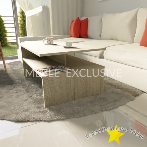 Ława kawowa wykonana z solidnej wysokiej jakości płyty laminowanej . Świetnie nadaje się do nowoczesnych salonów, mniejszych pokoi, czy eleganckich biur.