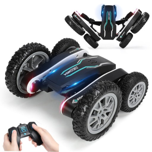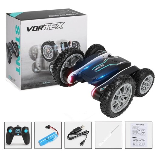 Samochód offroad potrafi niesamowite triki, może wykonać obrót o 360 stopni, przeskok kaskaderski o 360 stopni oraz jeździ do przodu i do tyłu, skręca w prawo i lewo.