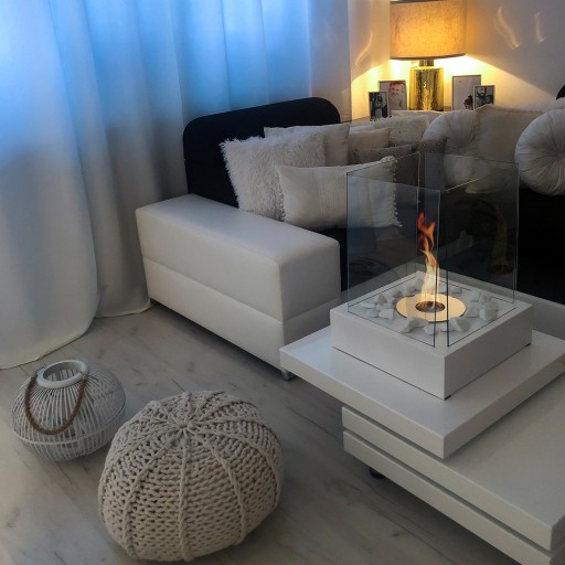 Biokominek wykonany ze szwedzkiej stali lakierowanej proszkowo farbą termoodporną w kolorze biały mat strukturalny.