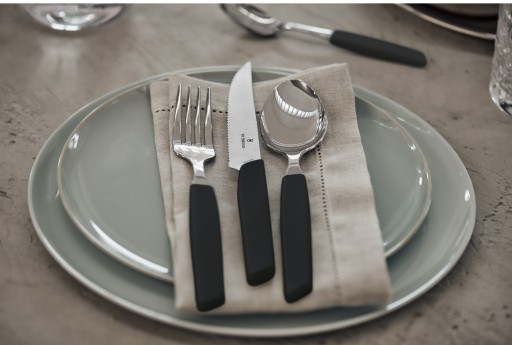 Rozszerzenie kolekcji Swiss Modern o widelce, łyżki, widelczyki i łyżeczki w trzech kolorach pozwoli wszechstronnie wykorzystać najpopularniejsze uniwersalne noże - również jako część zastawy stołowej.