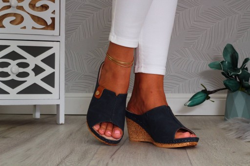 HIT klapki damskie na koturnie w kolorze granatowym, lekkie i wygodne.