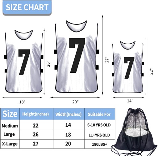 Zróżnicowane zastosowanie: zestaw 12 pinów / śliniaków treningowych / kamizelek sportowych / młodzieżowych koszulek sportowych z bezpłatną torbą do przenoszenia ułatwiającą przenoszenie. Idealny do sportów takich jak koszykówka, piłka nożna, piłka nożna, siatkówka i lacrosse.