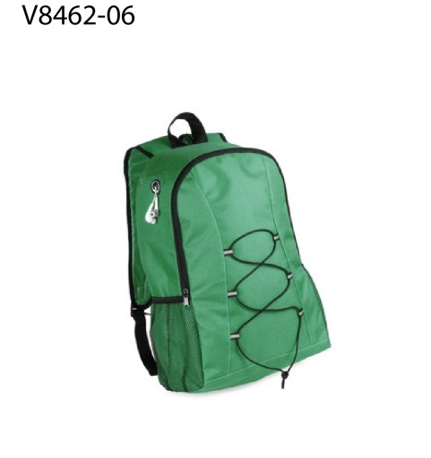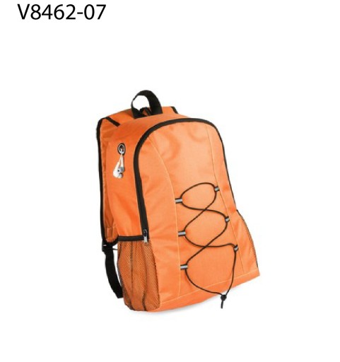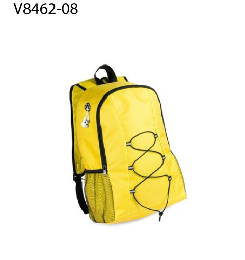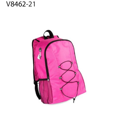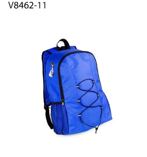 Plecak z główną przegrodą na zamek błyskawiczny i boczną siateczkową, miejsce na słuchawki.
