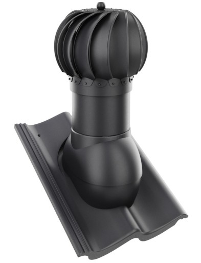 Kompletny kominek obrotowy wentylacyjny z przejściem dachowym, montowany bezpośrednio na dachówkę betonową.