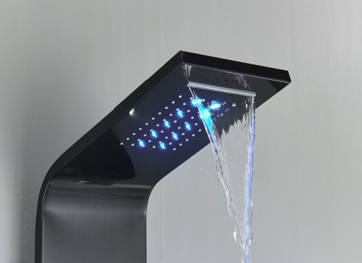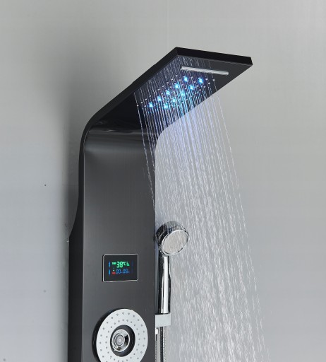 To ekskluzywny, stylowy, nowoczesny panel prysznicowy z hydromasażem, wodospadem, deszczownicą i diodami LED .