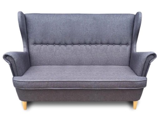PIĘKNY DUŻY ZESTAW SOLIDNA SOFA TRZYOSOBOWA NA DREWNIANYCH NOGACH + 2 FOTELE USZAK W WYBRANYM KOLORZE Z DREWNIANYM NÓŻKAMI WZÓR PIKOWANIA OPARCIA GŁEBOKIE PIKI KARO GUZIKI