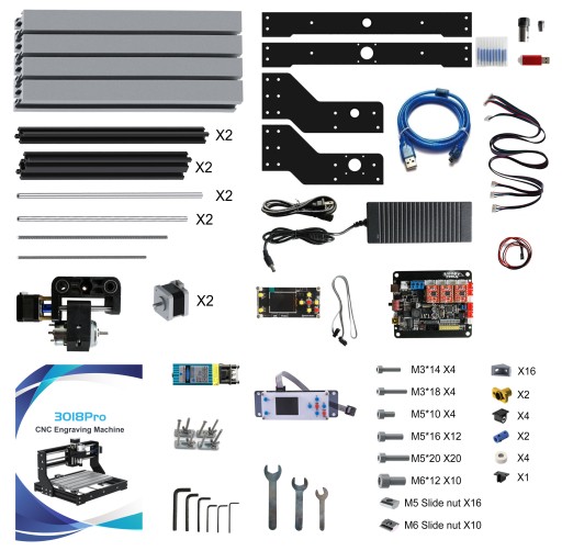 Zbudowany ze stopu aluminium i materiałów bakelitowych, CNC 3018 Pro charakteryzuje się dobrym wyglądem, wysoką precyzją i trwałością.