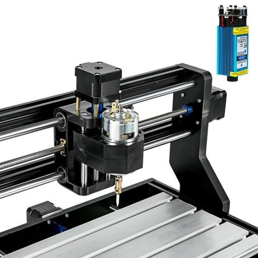 Moduł laserowy 2500mW i silnik wrzeciona 775 DC na osi Z mogą realizować dużą prędkość. Na trzech osiach znajdują się trzy silniki krokowe zapewniające płynny ruch.