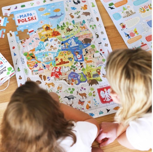 Ułóżcie puzzle i sami sprawdźcie, jak wiele miejsc czeka na odkrycie. Bawcie się w wyszukiwanie detali na ilustracji. Opowiadajcie o atrakcjach, legendach, zwierzętach i roślinach. Informacje z plakatu pozwolą wam dowiedzieć się więcej o Polsce i zainspirują do zdobywania nowej wiedzy. Pamiętajcie o naszych sugestiach podczas waszych kolejnych wycieczek! Plakat może stać się oryginalną ozdobą pokoju.