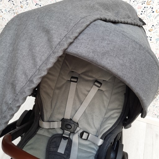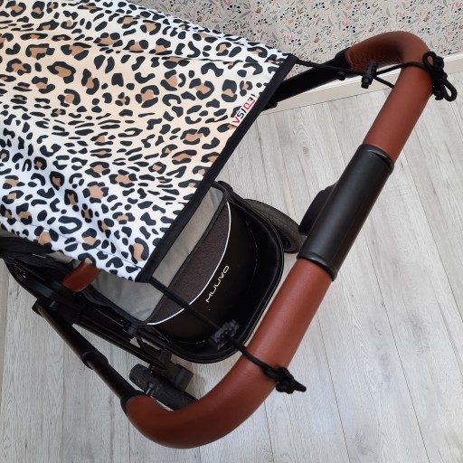 Mocowanie za pomocą gumy (naciągana na budkę wózka) i troczków ze stoperami do regulacji.