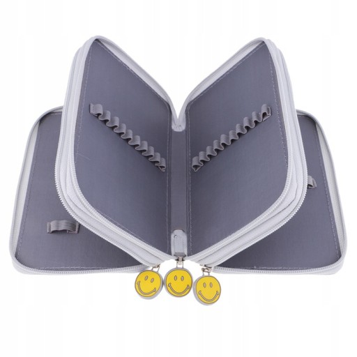 Piórnik wyposażony jest w 3 komory zamykane przy pomocy jednokierunkowego zamka błyskawicznego.