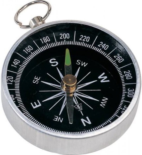 Kompas z lekkiego metalu o średnicy 4,5 cm. Posiada kółko umożliwiające zawieszenie go np. na sznurku. Dzięki niewielkim rozmiarom i wadze jest idealny również dla małych podróżników.