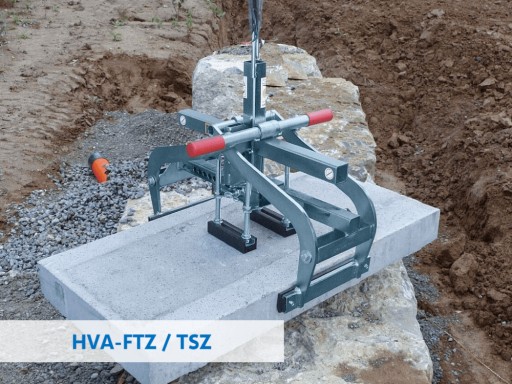 Chwytak TSZ-UNI przeznaczony jest do podnoszenia, przenoszenia i układania różnego rodzaju elementów betonowych i kamiennych jak np. stopnie, krawężniki. Transportowane elementy mogą mieć szerokość od 50 do 600 mm i ważyć maksymalnie 600 kg.
