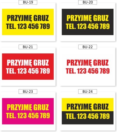 TŁO jeden kolor + napis typu: Sprzedam + nr telefonu