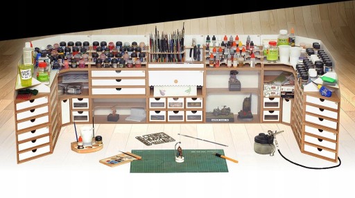 Moduł na Pędzle i Narzędzia posiada kilkadziesiąt otworów różnej średnicy na pędzle i narzędzia. Do zastosowania tylko w najwyższym rzędzie ustawionych modułów.