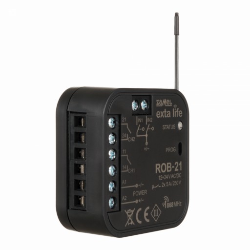 Odbiornik ROB-21 przeznaczony jest do otwierania/zamykania bram wjazdowych lub garażowych z poziomu pilotów oraz aplikacji EXTA LIFE. Odbiornik można również z powodzeniem wykorzystać do sterowania elektrozaczepami w furtach wejściowych na posesję. W przypadku sterowania bramami konieczne jest podłączenie odbiornika pod odpowiednie wejścia dedykowanego sterownika bramy wjazdowej lub garażowej. ROB-21 posiada dwa wejścia do podłączenia czujników krańcowych – dzięki temu w aplikacji widoczny jest faktyczny stan bramy: zamknięta / uchylona / otwarta. Funkcjonalnie tryb sterowania bramą umożliwia całkowite jej otwarcie lub jedynie uchylanie do ustalonego poziomu. Szeroki zakres napięcia zasilającego 12÷24 V AC/DC umożliwia współpracę z większością sterowników bram dostępnych na rynku. Dwa kanały ze stykami NO umożliwiają niezależne sterowanie: bramą i furtką, dwoma bramami lub dwoma furtkami. Wymiary umożliwiają montaż urządzenia w puszkach instalacyjnych Ø60 lub bezpośrednio w obudowie sterownika bramy.