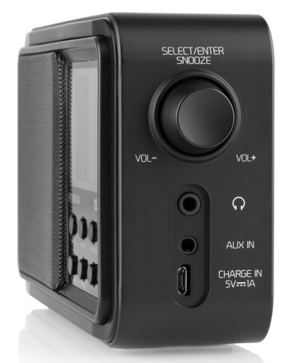 Dostępne funkcje: tuner DAB+, cyfrowy tuner FM, Bluetooth oraz budzik.