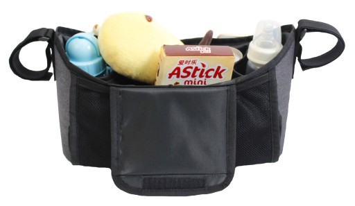 Organizer do wózka marki Baby Dan to idealny sposób na trzymanie podręcznych rzeczy bliżej siebie. Wewnątrz organizer posiada jedną większą kieszeń idealną na pieluszkę, chusteczki czy przekąski oraz dwie mniejsze kieszonki przeznaczone na np. butelkę lub kubek. Z zewnątrz organizera znajdują się dwie małe kieszonki, w których można przechowywać np. klucze lub telefon.