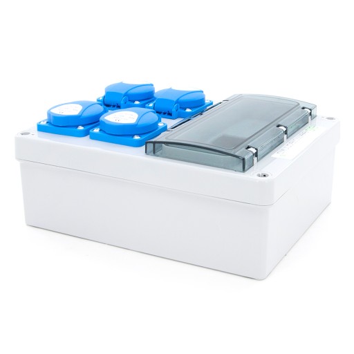 4NO - rozdzielnice z okienkiem 4 modułowym - maksymalnie 2 gniazda siłowe i 2 gniazda 230V. Dostępne wersje gotowe do podłączenia zasilania i pracy z zabezpieczeniami, lub wersje bez zabezpieczeń - do dowolnego podłączenia.