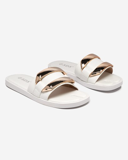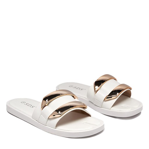 BIAŁE DAMSKIE KLAPKI ZE ZŁOTĄ OZDOBĄ KEDINO