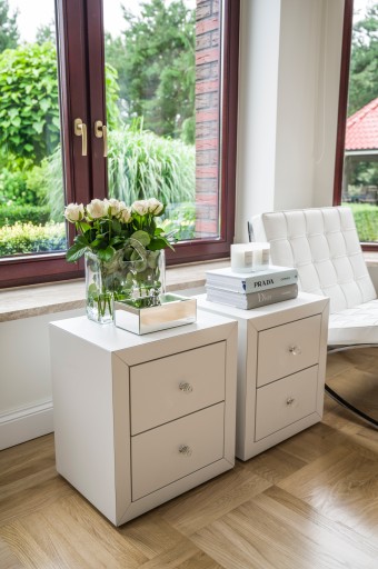 Kredens z linii as home X laura to połączenia lustra kryształowego z białym, matowym mdf-em, wyciętym na froncie w X. Linia ta stała się dla AS HOME zupełnie nowym projektem, bo oprócz lustra kryształowego, w którego obróbce zespół ma już doświadczenie, wprowadziliśmy na blat MDF najwyższej jakości, w kolorze matowej bieli, oraz ramę X drzwiczek i szuflady z bardzo delikatnym i subtelnym frezem, konsekwentnie pozostając przy kryształowych uchwytach.