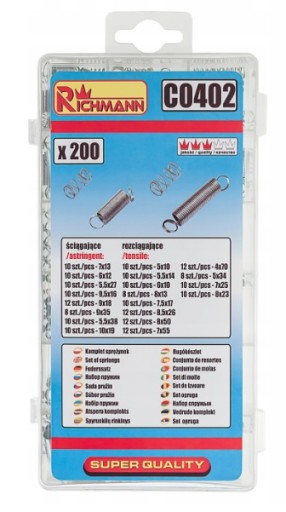 - Zestaw 200 sztuk sprężynek w popularnych rozmiarach.