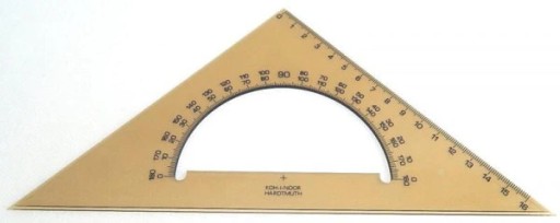 Ekierka równoramienna wykonana z dymionego tworzywa sztucznego. Ekierka wyposażona jest w kątomierz oraz precyzyjną skalę. Posiada podcięcie na dwóch krawędziach, dzięki czemu przy kreśleniu tuszem, kreski nie rozmazują się.Ekierka dostępna jest w rozmiarze 45/177 16 cm.