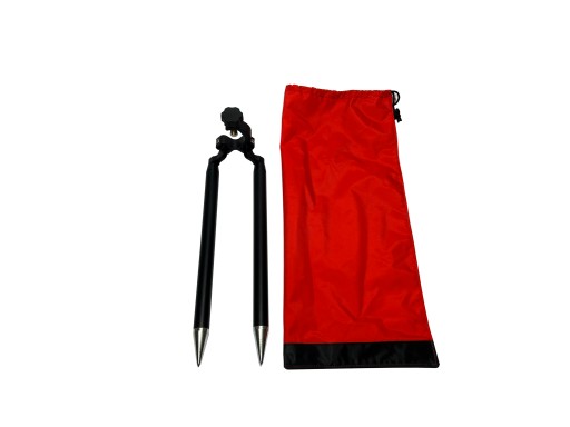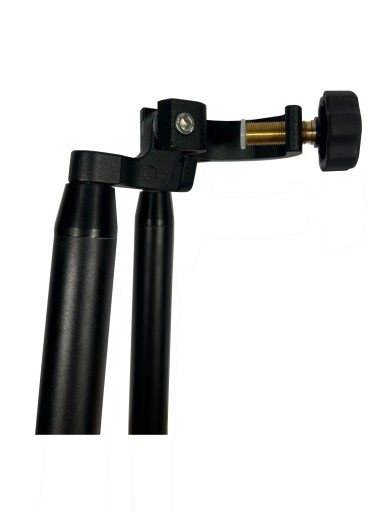 Mini bipod (stojak dwunożny) podpora do tyczek pod lustro lub antenę GPS. Umożliwia szybkie, samodzielne ustawienie mini tyczki w pozycji pionowej. Wykonany z aluminium. Pasuje do małych tyczek o max. średnicy 37mm oraz minimalnej 42cm wysokości dolnego elementu.