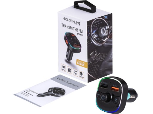 Transmiter FM GÖTZE & JENSEN Golden Line FT800 to urządzenie, dzięki któremu możesz bezprzewodowo podłączyć zewnętrzne źródło dźwięku, np. smartfon do samochodowego zestawu audio. Wystarczy w prosty sposób zamocować go w zapalniczce samochodowej, by cieszyć się ulubioną muzyką lub wygodnie prowadzić rozmowy.