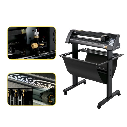 Ten starannie dobrany ploter winylowy ze stojakiem podłogowym jest wyposażony w zaawansowane funkcje, które zapewnią profesjonalnie wyglądające projekty. Zapewnia maksymalny posuw papieru 870 mm / 34,3 cala przy maksymalnej szerokości cięcia 780 mm / 30,7 cala. Wbudowane oko optyczne do naprowadzania laserowego będzie półautomatycznie i dokładnie skanować wszelkiego rodzaju znaki. Solidna konstrukcja z wyświetlaczem LED pomoże Ci w przejrzystej i łatwej obsłudze maszyny. Może wycinać różne skomplikowane litery i wzory, w tym papier, karton, winyl i tkaninę.
