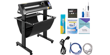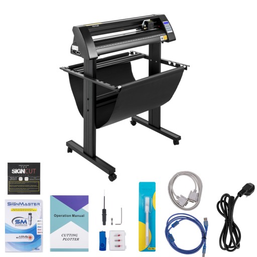 Ten ploter do wycinania znaków zawiera kompletne akcesoria dla lepszego wykorzystania, takie jak pamięć USB wraz z instrukcją instalacji i obsługi, 5 arkuszy winylowych, mata do cięcia i wymienne ostrza. Oferuje również bezpiecznik posiadający funkcję zatrzymania awaryjnego, aby zapobiec niebezpieczeństwu.