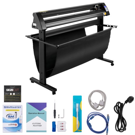 Ten ploter do wycinania znaków zawiera kompletne akcesoria dla lepszego wykorzystania, takie jak pamięć USB wraz z instrukcją instalacji i obsługi, 5 arkuszy winylowych, mata do cięcia i wymienne ostrza. Oferuje również bezpiecznik posiadający funkcję zatrzymania awaryjnego, aby zapobiec niebezpieczeństwu.
