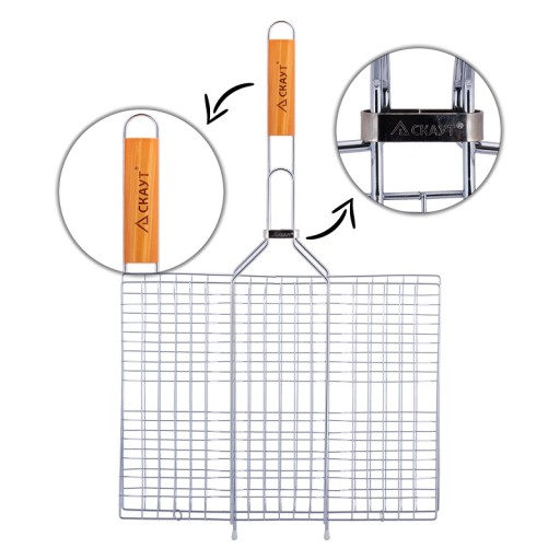 Podwójny ruszt z długą rękojeścią jest doskonały podczas grillowania kawałków mięsa, kruchych ryb, kiełbas, warzyw itd.